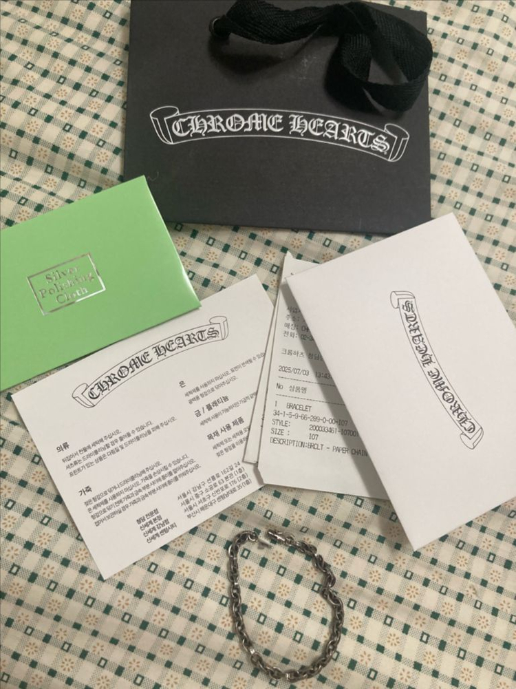 크롬하츠 페이퍼팔찌7인치 새상품 풀구성 판매합니다 사실분연락주세요