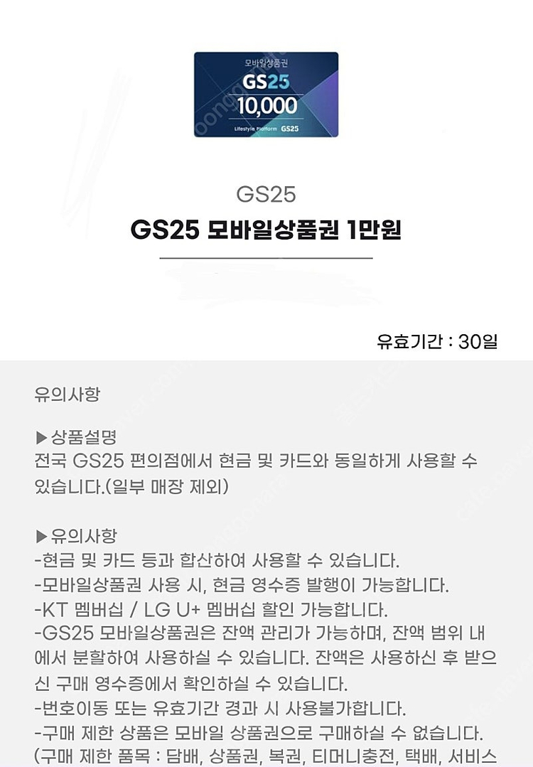 📢 제목에 "제조사/ 브랜드 명"과 "티켓명(ex. 스타벅스 아메리카노 Tall) ”을 넣어 작성하면, 보다 빠른 판매가 가능합니다! 📢 게시글 작성 시 배송 방법에 “직거래”와 “내 위치” 설정할 경우, 보다 빠른 판매가 가능합니다! 📢 내가 가진 커피, 편의점 e쿠폰을 <J쿠폰>에서 간편하고 빠르게 판매가 가능합니다! 2일 이내 판매금을 정산 받아보세요. GS25 편의점 모바일 상품권 1만원권 저렴하게 판매합니다!!! 1만원권 장당 8,700원 수량 여럿. 유효기간 30일 에눌문의. 찔러보기. 계좌먹튀 사절 안심번호로 문자주세요^^ 🚨회원님의 거래 게시글을 노린 중고나라 운영진 사칭 피싱 사이트를 주의하세요🚨