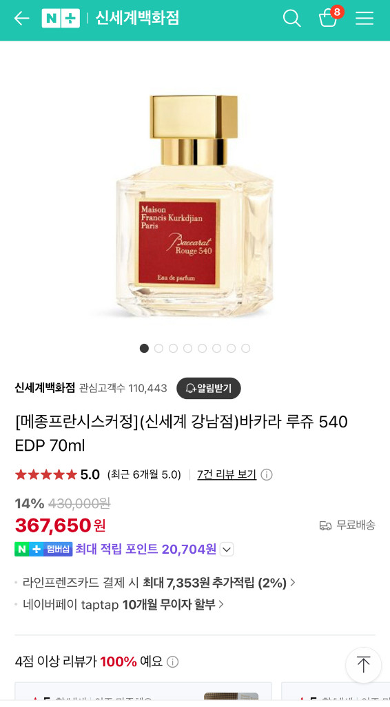 메종 프란시스 커정 바카라 루쥬 540 EDP. 향이 정말 고급진 향수에요. 다른 향수 절대 못 씀. 비닐도 뜯지 않은 새제품이에요. 저렴한 가품 말고 꼭! 정품 사용하세요~ 현재 신세계 367,650원에 판매중이에요. 구매: 20250716 - 오드 퍼퓸 - 직거래 희망 - 가품시 100%환불
