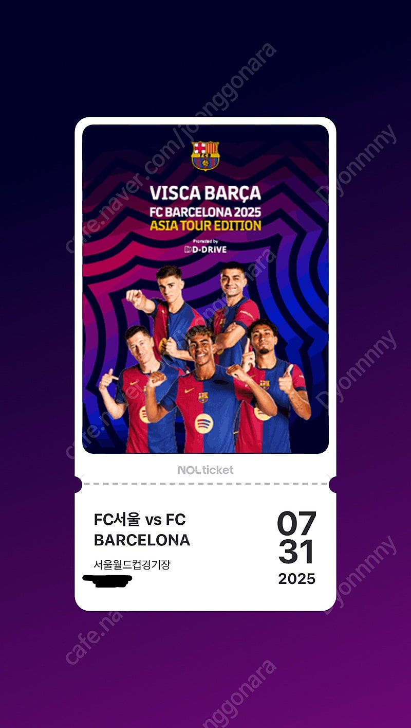 2025년 7월 31일 20시 서울월드컵경기장 FC 서울 vs FC 바르셀로나 경기 티켓 판매합니다~ 2장가격이에요 좌석은 3등석 A 이구요 좌석 위치 E-T구역 65열 17 ,18입니다. 사진참고해주세요:) 일이 생겨 못 가게되어 판매합니다 ! 티켓은 카카오톡으로 직접 보내드리겠습니다 :) 🚨회원님의 거래 게시글을 노린 중고나라 운영진 사칭 피싱 사이트를 주의하세요🚨