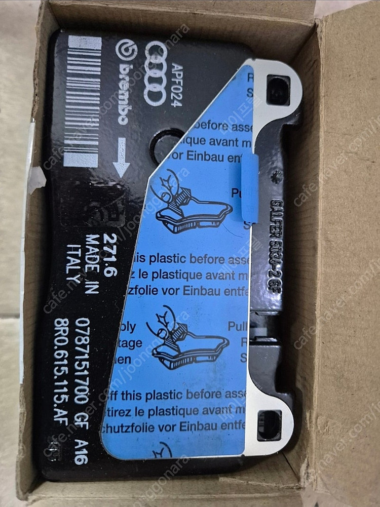 📢 제목에 "제조사/ 브랜드 명"과 "차종(ex. 아반떼 CN7)”를 넣어 작성하면, 보다 빠른 판매가 가능합니다! 📢 게시글 작성 시 배송 방법에 “직거래”와 “내 위치” 설정할 경우, 보다 빠른 판매가 가능합니다! 폭스바겐, 아우디 차량용 브렘보 브레이크 패드 새상품입니다 모델 번호: 8R0615115AF 박스 포함 아우디 프론트 브레이크 패드와 센서 팝니다. 센터 가격은 프론트 브레이크 27만원 & 센서 6만 2천원입니다. 이건 아주 예전 가격이니 지금은 아마 더 올랐을 거에요. ^^ 거래는 택배거래 직거래 둘 다 가능하구요, 직거래는 목동에서 가능해요. 택배거래는 제가 배송비 부담하고요. 전화 문자 주세요. 새벽 한 시까지는 괜찮아요~ ^ ^ 공일공 이이구오 공오공이 🚨회원님의 거래 게시글을 노린 중고나라 운영진 사칭 피싱 사이트를 주의하세요🚨