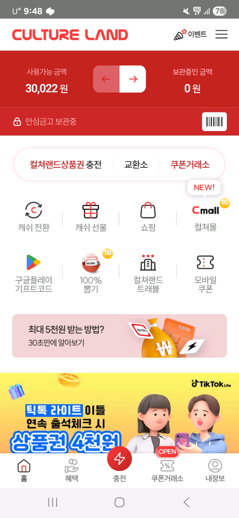 컬쳐랜드 캐쉬 3만원 판매합니다 88%입니다