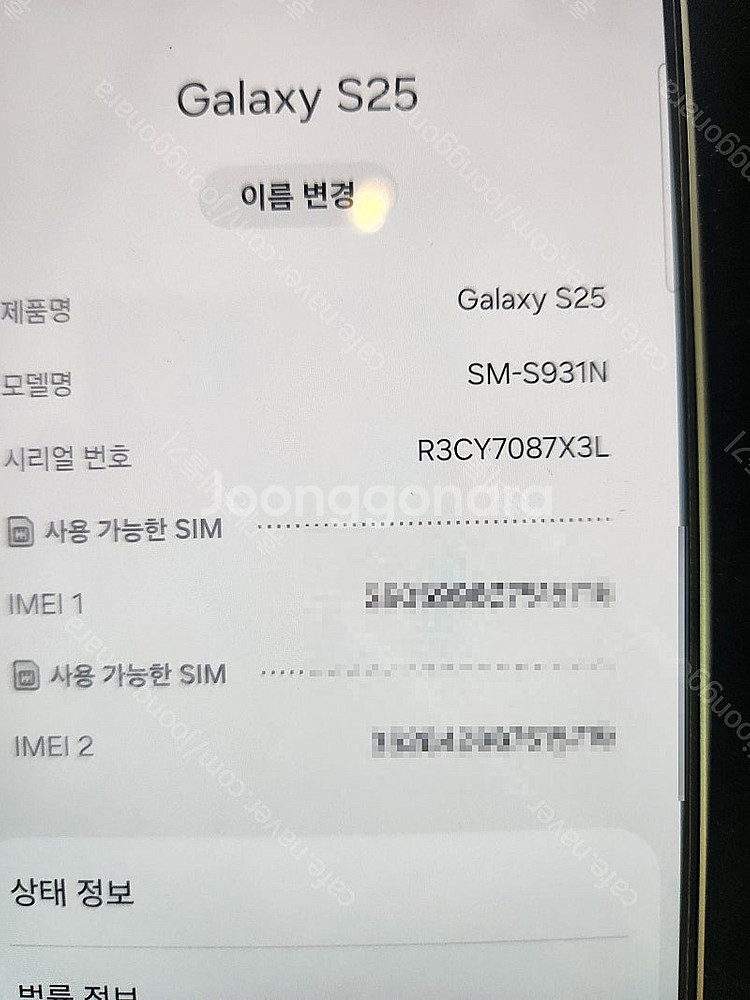 📢 제목에 "제조사/ 브랜드 명"과 “상품명(ex. 갤럭시 S11) ”을 넣어 작성하면, 보다 빠른 판매가 가능합니다! 📢 게시글 작성 시 배송 방법에 “직거래”와 “내 위치” 설정할 경우, 보다 빠른 판매가 가능합니다! ♥♥안녕하세요 ♥♥ ♥♥중고나라에서 인증하고 업무 제휴 업체인 셀러업체입니다♥♥ ♥♥믿고 구매 부탁드려요~!♥♥ 문자 또는 전화로 문의 부탁드립니다 네이버톡이나 앱채팅은 실시간 확인이 힘듭니다 삼성 갤럭시 S25 256기가 실버쉐도우 풀박스 실사용2일 단순개봉급 기스하나없는 새상품급 판매합니다 최초통화일 7.18 입니다 유심기변용으로 3사유심 모두 사용가능합니다 기스하나없는 새 상품급입니다 직거래는 경기 시흥 신천역부근 가능합니다 오시기 힘드시면 퀵거래 가능/택배거래 가능 ***-****-**** 🚨회원님의 거래 게시글을 노린 중고나라 운영진 사칭 피싱 사이트를 주의하세요🚨상품 정보 내 개인정보는 자동 보호됩니다. 안심결제로 안전하게 거래하세요.