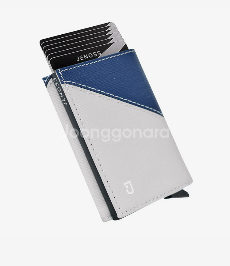 Jenoss 카드지갑 (블루/화이트 색상) 총 12개나 카드 수납 가능합니다 지폐, 카드 모두 컴팩트 하고 슬림 하게 수납 하여 가지고 다니시기 편합니다 :) 밑에 스위치가 있어서 스위치 당기시면 총 6개의 카드가 쓕~ 하고 올라와 편하게 카드 사용 가능합니다^^ 최근 아이폰 맥월렛 구매하여 사용한지 1년도 안되어서 판매 합니다