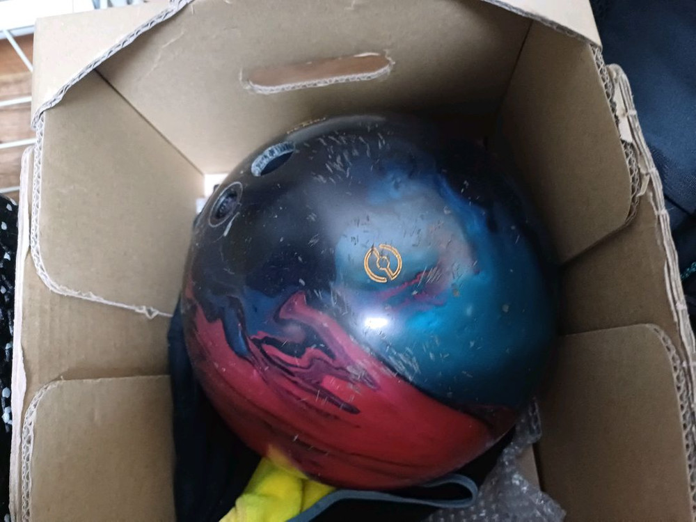 볼링공 판매합니다 무게는 정확히는 모르지만 6키론가 나온걸로 압니다 아마 13파운드 될겁니다 투핑거 지공이고 2회지공일거고 인서트 교체 필요합니다 그냥 연습구로 편히 사용하실분 구해요