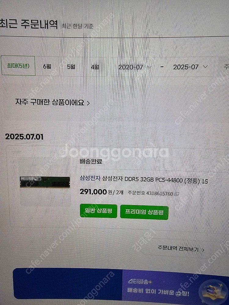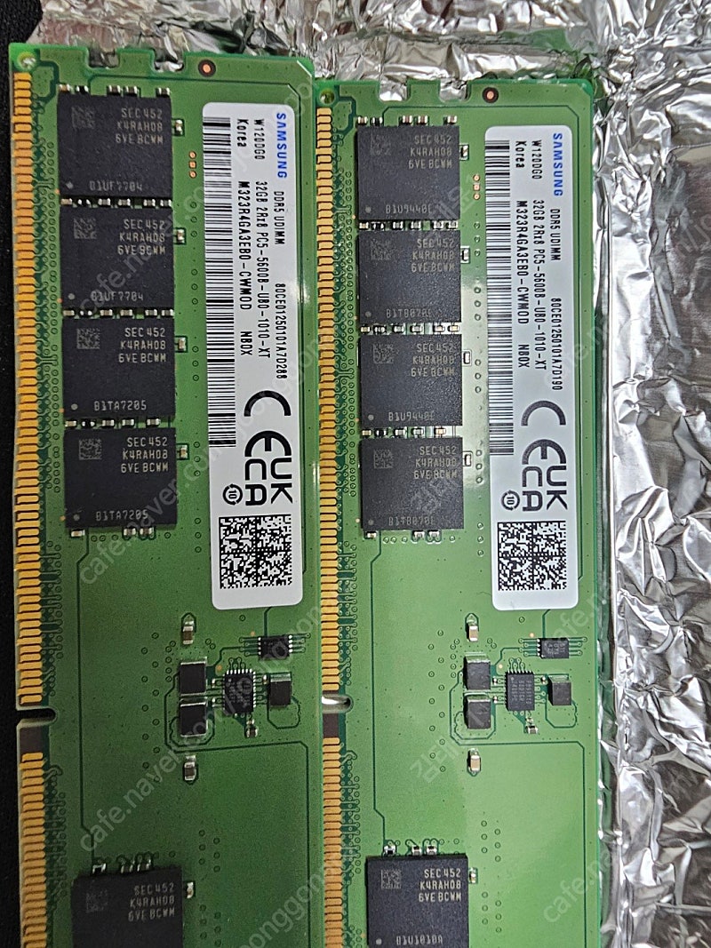 삼성 DDR5 32GB PC5-44800 램2개 = 64GB 7월초에 구입해서 일이 바빠 이제서야 장착을 해봤는데 제컴 메인보드가 DDR5 램이 안들어가네요. 한번도 사용안한 새제품입니다. 291,000원에 구입했고 260,000원에 판매합니다. 🚨회원님의 거래 게시글을 노린 중고나라 운영진 사칭 피싱 사이트를 주의하세요🚨