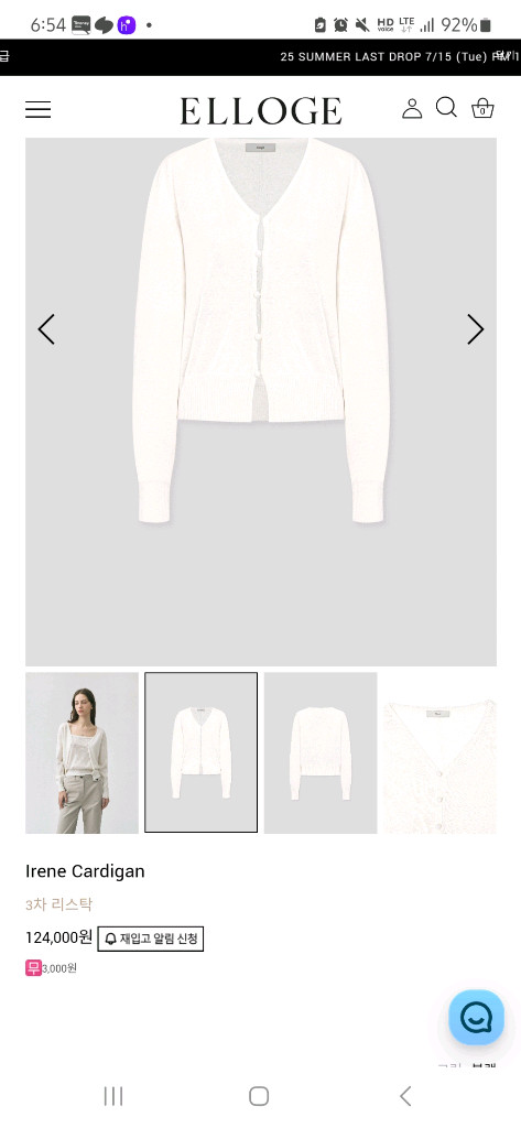 엘로주 elloge 아이린 가디건 슬리브리스 페일핑크