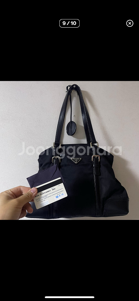 프라다 삼각로고 포코노 나일론 토트&숄더백입니다. 사이즈는 가로 하단 35 상단 30 세로 25 손잡이 포함 48에 적당한 사이즈이며, 전체 바디가 프라다 고유의 포코노 나일론으로 처리되 어있고, 수납공간도 잘 짜여있는 토트&숄더백입니다. 전체적으로 좋은 컨디션 유지중이며, 내부 안감 또한 터짐 없이 양호합니다. 중간 부분도 지퍼로 열리는 부분인데 중간 까지는 잘 열리나 이후부터는 조금 뻑뻑해서 초칠해주시면 좋을거 같습니다 모서리 마모감 없이 좋은 컨디션 유지중입니다. 보증서 포함 된 정품 입니다