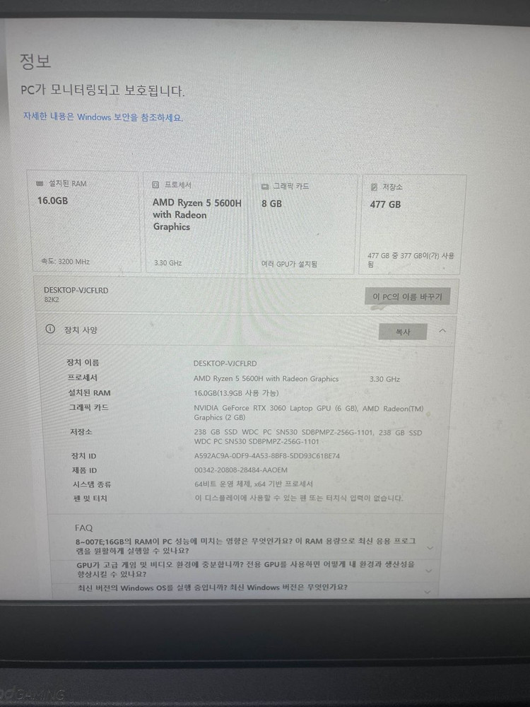 상품명 : 레노버 IdeaPad 게이밍 노트북 모델명 : LENOVO_MT_82K2_BU_idea_FM_IdeaPad Gaming 3 15ACH6 구매 시기 : 2023년도 12월 즈음 구매처 : 국내발매 사용 기간 : 대략 2년 하자 여부 : 노트북에 기본적으로 달려있는 키보드 몇몇개가 박살나있고 박살 나있는 부분 작동 안합니다 같은 게이밍 노트북이면 교환 가능 내장 그래픽 카드 NVIDIA GeForce RTX 3060 Laptop GPU , AMD Radeon(TM) Graphics ( 2 GB) 조금 과투자 해서 성능이 게임을 요즘 잘 안해서 저에게 조금 과분한것 같아 판매하기로 결정했습니다 가격 조정 가능하고 이상한분들 바로 차단입니다. 각종 인증 가능합니다