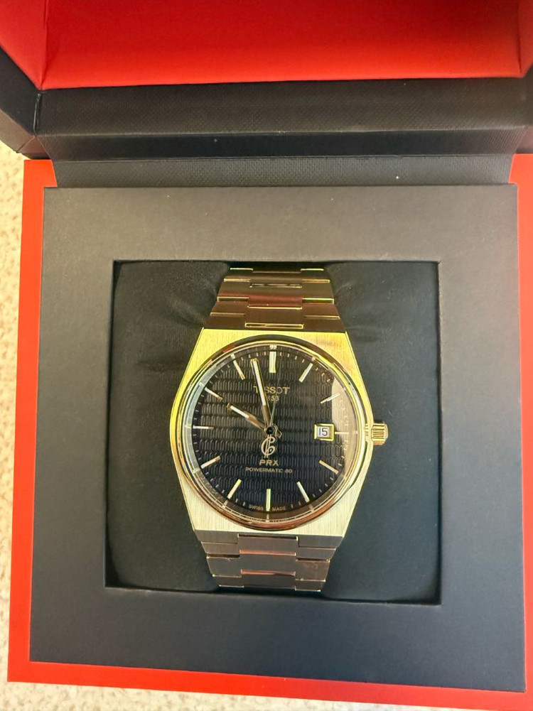 티쏘 PRX 40MM 파워 매틱 80 데미안 릴라드 한정판 새상품 티쏘 정품 러버 블랜 밴드 새상품 포함 제 손목에 맞게 티쏘 매장에서 길이 조정 사용X 경기 광주 태전2동 직거래 타 지역 선불 착불도 가능 구매 하실 분만 연락주세요 공일공 44사사 팔7이오 문자 부탁드려요