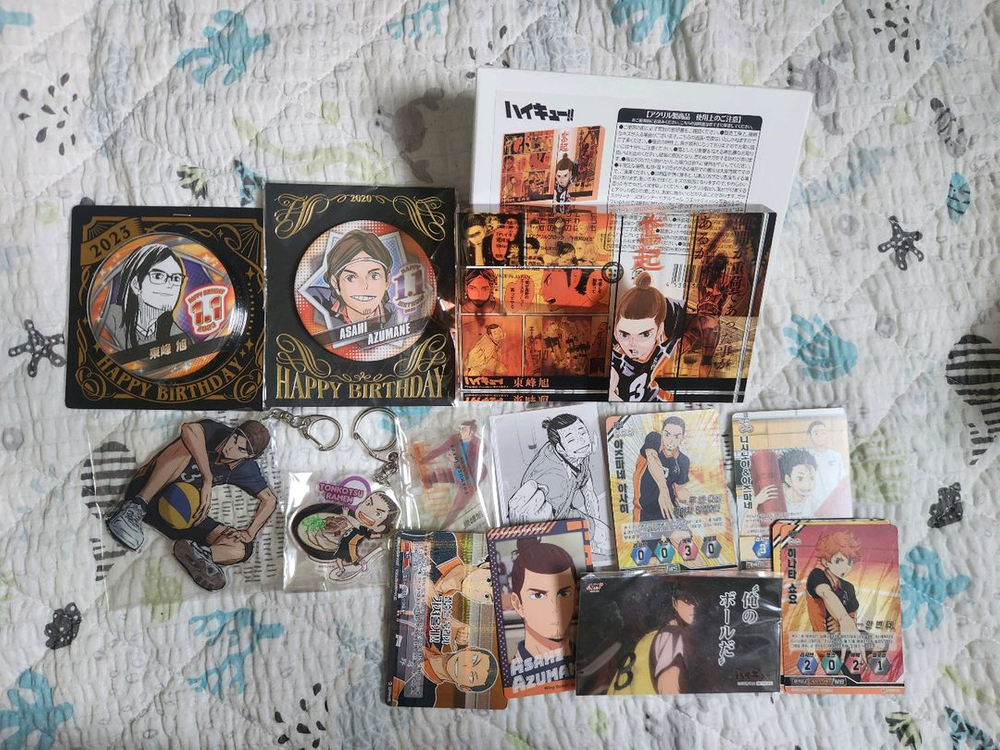 하이큐 아즈마네 아사히 굿즈 처분합니다! 2020/2023 생일 뱃지 - 각 10000원 (미개봉) 크로니클 아크릴 - 3000원 승리의 투지 아크릴 키링 - 8000원 좋아하는 음식 키링 - 3000원 아크릴 생일 블록 - 110000원 (단순개봉) ※사진 속 지류는 개별 판매 안합니다! 일괄로 구매시 덤으로 드립니다◠ ̫◠ 📢일괄 구매시 13만원으로 드립니다! 📢인증 및 상품 개별로 확인해드릴 수 있습니다 📢사진 속 바보카 등 지류 굿즈 및 타캐릭터 뱃지/키링도 덤으로 함께 넣어드립니다( ̳• ·̫ • ̳) 강남역/김포공항역/장기역 직거래 가능 반택/우체국 택배 가능합니다 (※무게에 따라 배송비는 상이할 수 있습니다) (급전이 필요해서 급하게 처분하고 싶어서 에눌 요청도 받고있습니다. 편하게 연락주세요~)
