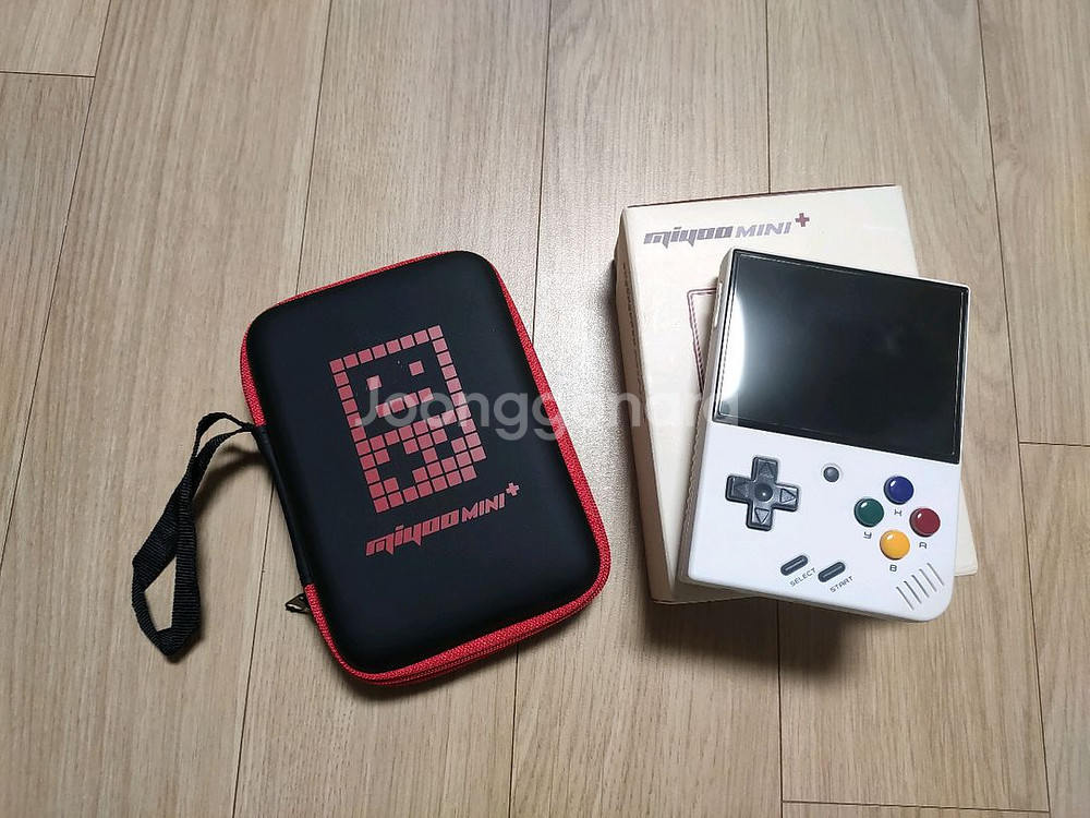 미유미니 플러스 (미미플) 흰색 입니다 박스 있구요 구성품 다 있습니다 미미플 전용 파우치 드려요 키오시아로 메모리 교체했습니다 (64gb 한방팩 설치해서 게임 충분히 많습니다 미미플 사양 다 활용해요 기기문제없어요 반값택배는 그냥 보내드려요 택포 일반택배는 +2000원