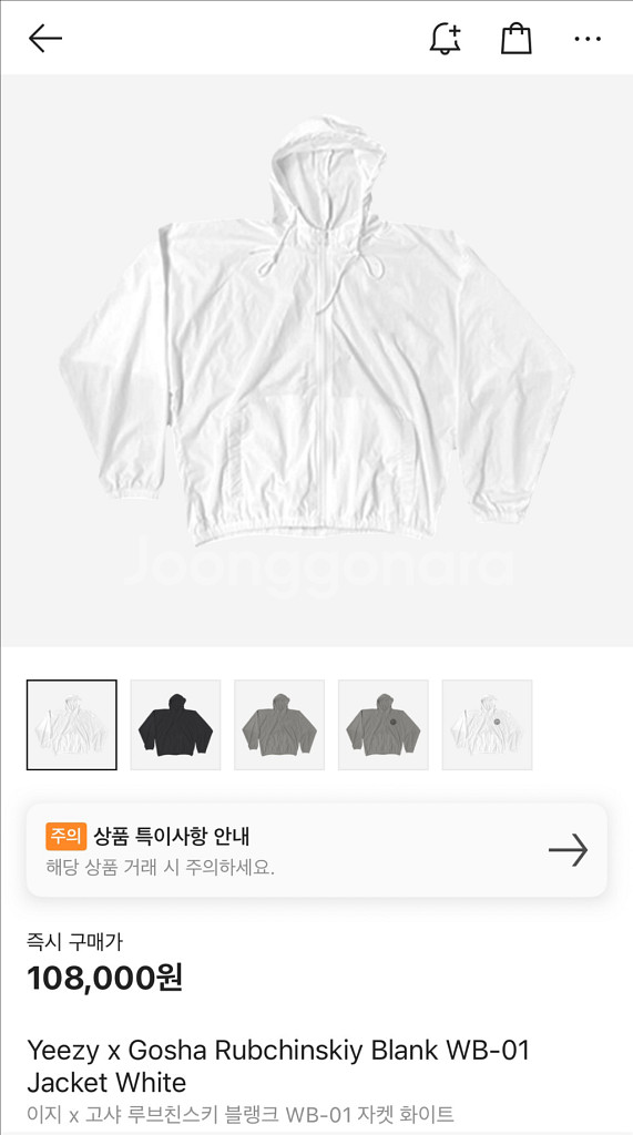 칸예 yeezy x 고샤 콜라보 wb-01 화이트 2 사이즈 바람막이 새상품입니다 무신사에서 샀고 지금 다 품절라서 못 구합니다! - 색상: 화이트 - 사이즈: 2 - 가격: 90,000원 -일반택배,편의점 택배 가능 (배송비별도)