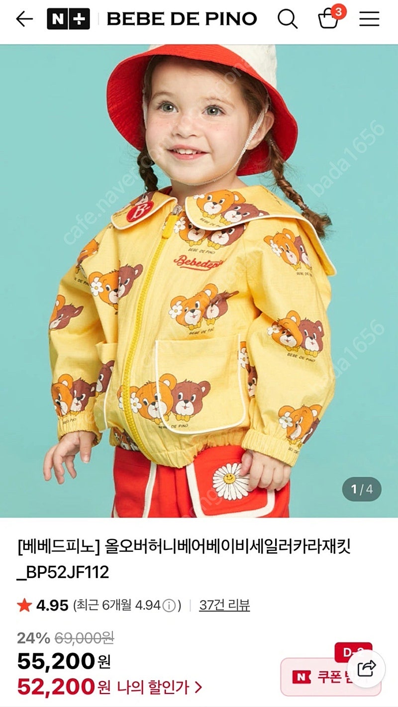 📢 제목에 "제조사/ 브랜드 명"과 "상품명”를 넣어 작성하면, 보다 빠른 판매가 가능합니다! 📢 게시글 작성 시 배송 방법에 “직거래”와 “내 위치” 설정할 경우, 보다 빠른 판매가 가능합니다! “베베드피노 올오버허니베어베이비세일러카라재킷(새상품)” 사이즈 100 똑같은 옷을 선물받아서 판매해요! 박스열어만본 새상품 입니다🙂 지금 네이버판매가보다 저렴하게 올렸습니다(네고X) 🏷환불,반품,취소 안돼요🙅🏻♀️(예민맘X) 🏷택배 가능합니다(택배비 별도) -> 물건값 선입금 후 택배비는 운송장번호와 영수증 보내드릴때 받겠습니다! 🚨회원님의 거래 게시글을 노린 중고나라 운영진 사칭 피싱 사이트를 주의하세요🚨