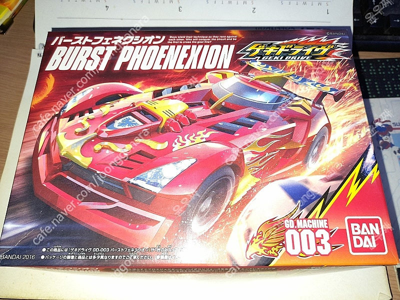 1. 게키드라이브 GD-003 버스트 페넥시온 ----12,000원 (미사용, 박스크기 20.5X15, 박스바닥 찍힘자국 있슴) 2. 1986 푸른유성 SPT 레이즈너 1/100 자칼 -------------18,000원 (미사용, 박스크기 14.5X20) 3. 2002 반다이 아카데미 크러시기어 레이징불5 -------20,000원 (미개봉, 박스크기 20x15, 박스는 세월감 있고 측면 눌림 있슴 개별 구매 가능합니다. 부산직거래나, 택배거래시 3000원 추가됩니다