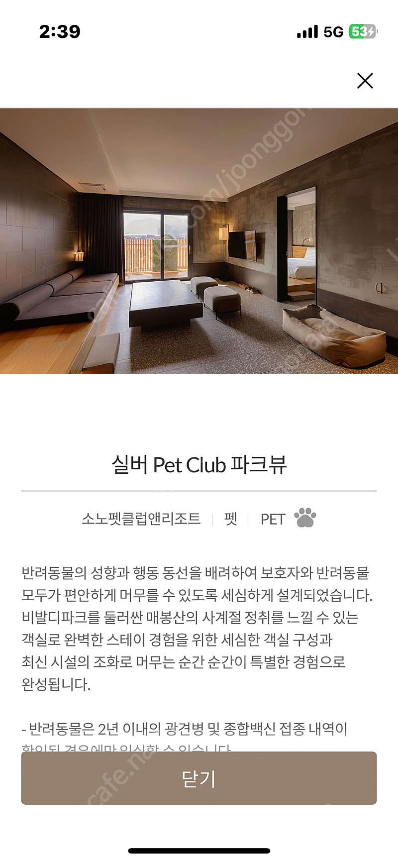 📢 제목에 "제조사/ 브랜드 명"과 "상품명”를 넣어 작성하면, 보다 빠른 판매가 가능합니다! 📢 게시글 작성 시 배송 방법에 “직거래”와 “내 위치” 설정할 경우, 보다 빠른 판매가 가능합니다! 대명리조트 반려견과동반입장할수있는 비발디파크 양도합니다. 8월13일부터 8월15일까지 2박3일 객실 실버 펫 클럽파크뷰 취사. 양도합니다 연락주세요 🚨회원님의 거래 게시글을 노린 중고나라 운영진 사칭 피싱 사이트를 주의하세요🚨