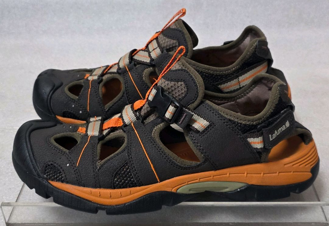 라푸마 Lafuma 정품입니다 춘하용 경등산화 트레킹화 입니다 여름에 물놀이에도 필요한 등산화 입니다 라벨은 남성용 270이고 조금 크게 나왔습니다 보통발볼 270 좁은발볼 275 잘 맞습니다 발등부분에 버클로 잠그고 길이 조절도 됩니다 앞부분 튼튼해서 발가락을 보호합니다 중창부분 쿠션감도 좋습니다 바닥창은 미끄럼 방지되고 물빠짐도 됩니다 사용감 적고 상태는 좋습니다 하자는 없고 바닥상태도 좋습니다