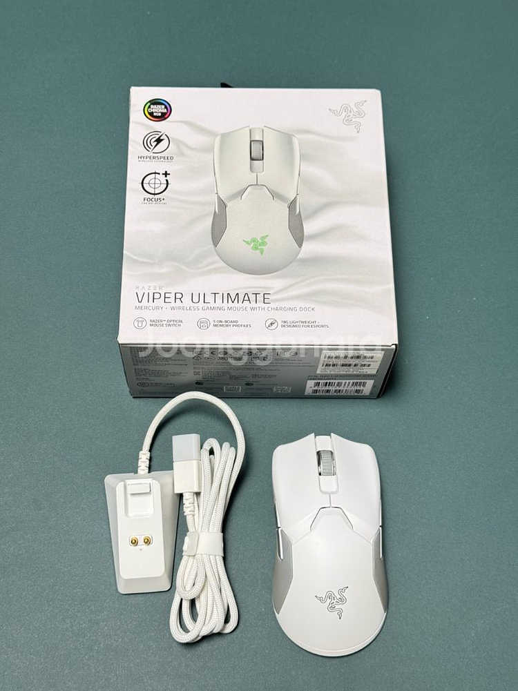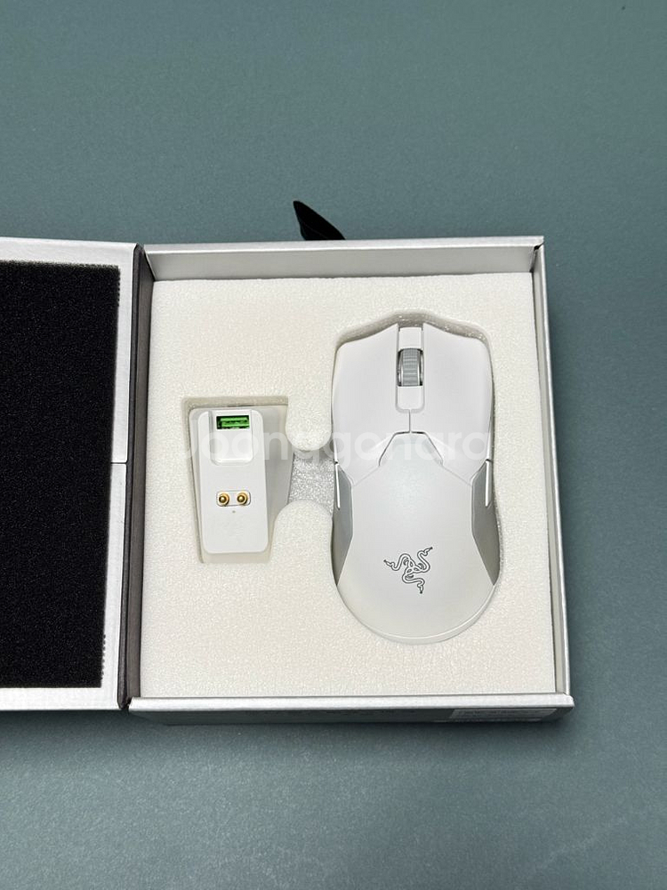 레이저 바이퍼 얼티메이트 색상 - 화이트 구매 후 사용하다가 다른 마우스로 바꾸면서 박스에 다시 넣어두었습니다. 깨끗하게 사용하였습니다. 구성품은 다 있습니다.