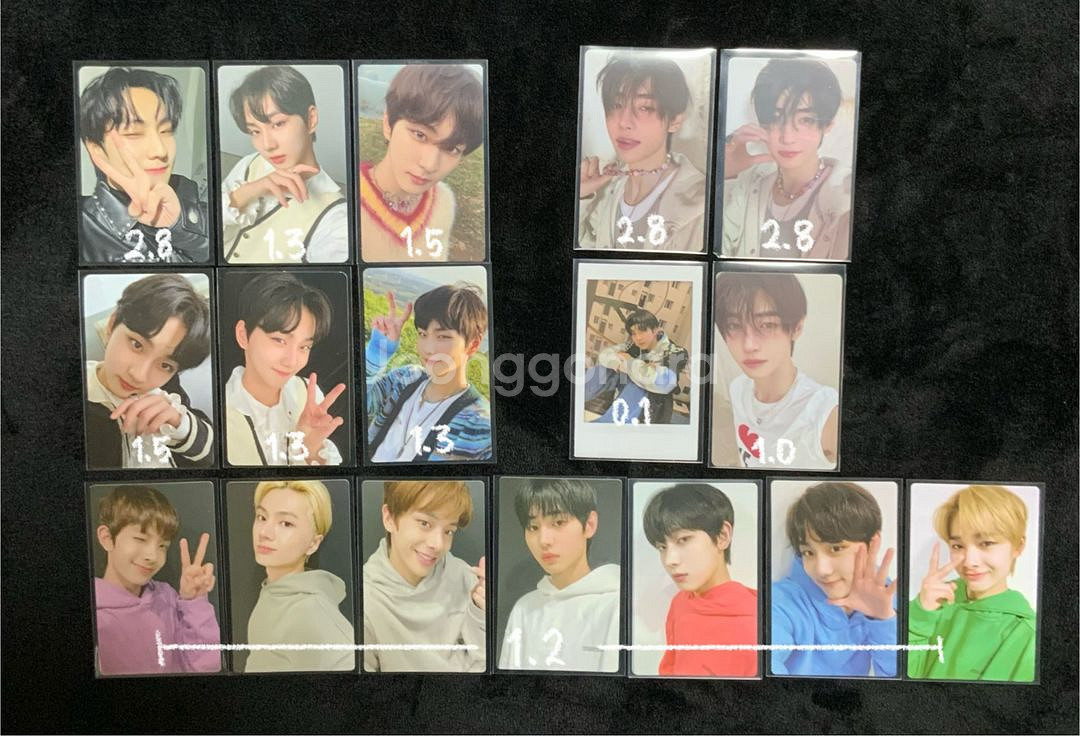 인증 웬만하면 다 해드려용 구매의사 확실하신 분만 인증요청 해주세용 0.5 이상 거래합니당 정리 목적으로 판매하는 거라 굿즈같은 거 같이 넣어드릴 수도 있어용 시세 모르는 것도 있고 제가 샀던 가격에 파는 것도 있어서 어느정도 네고는 웬만하면 받습니당 배송 보통 주말에는 무조건 해드려용 귱금한 건 편하게 연락쥬세용♡