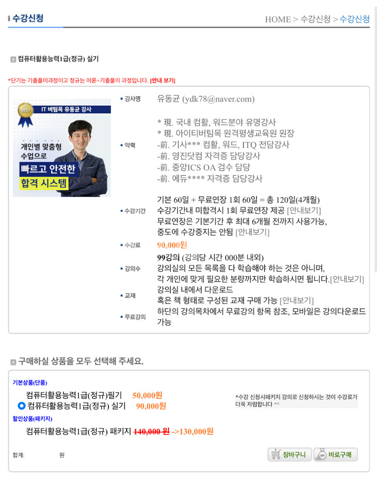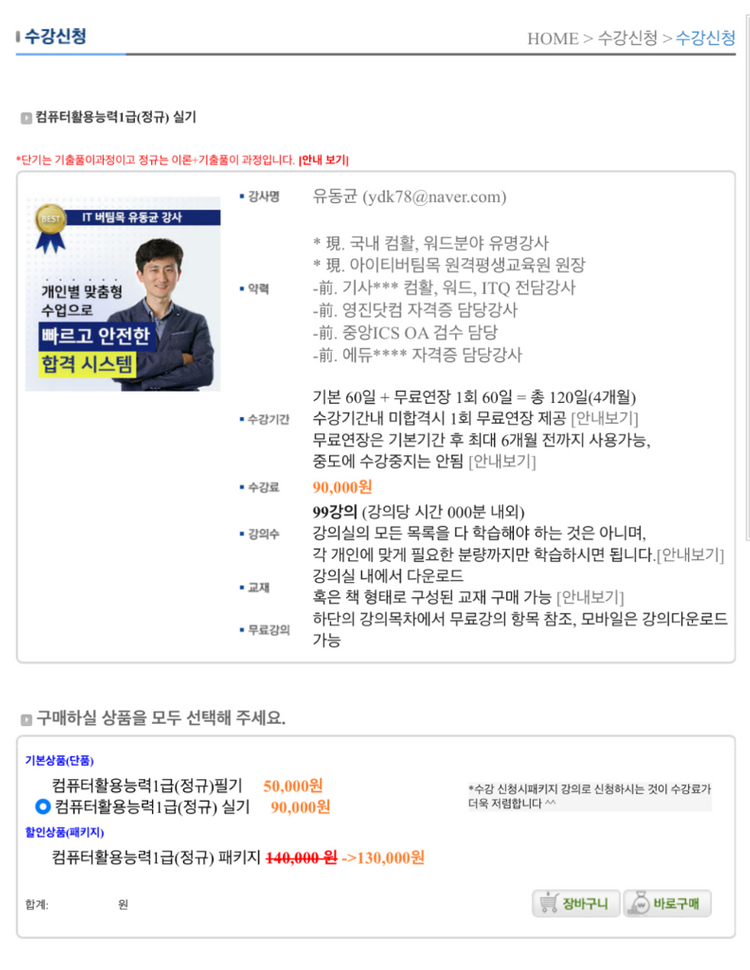 개인정보(거래정보)를 주고받는 행위는 사기에 노출될 수 있으므로 즉시 중고나라로 신고해 주세요유동균 컴활 1급 실기 정규과정 인강 공유하실 분 찾습니다 원가 90000원인데 제가 평일 오후 5시 이후부터 새벽까지 들을 예정이라 아침부터 오후 5시까지 들으실 수 있으신분에 한하여 42000원 받겠습니다 주말은 각자 하루씩 들을지 아니면 평일과 동일하게 들을지 협의 가능합니다
