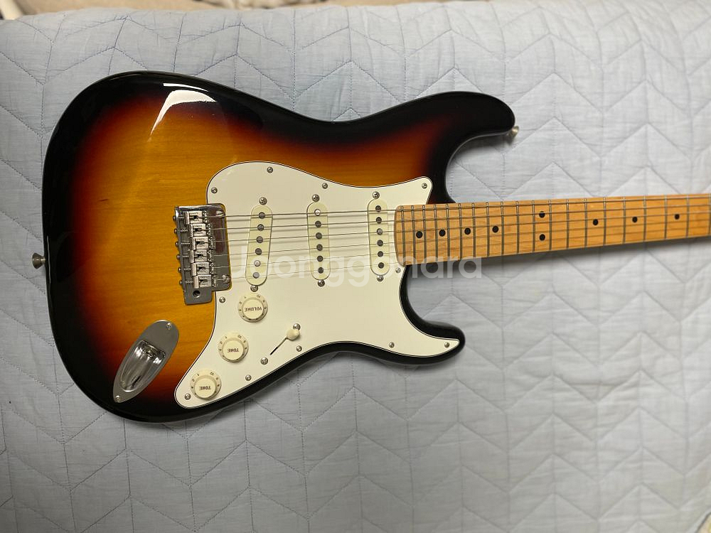 안녕하세요. short scale fender japan 입니다. 스케일길이 20인치입니다. 거의 없는 물건일 겁니다. 바디도 스케일에 비례해서 작습니다. 무게도 가볍고요. 어린 학생이나 여성수강생이 있는 음악학원에 좋은 아이템일듯 합니다. 그렇다고 정상(?)사이즈의 남자한테 작냐하면 그것도 아닙니다. 하이프렛 솔로잉도 문제없습니다. 전반적으로 모든 프렛에서 손이 아주 편안합니다. 픽업은 야무진 펜더 그대로입니다. 신품구매해서 나무 익힌다고 보관만 하던중인데 기타 댓수를 줄여야해서 내놓습니다. 신품구입시부터 전용 소프트케이스로 왔습니다. 트레몰로 암 있습니다. 아래 사진속 동그라미 친 기타가 이 기타입니다. 바로 오른쪽 2대가 24.75인치 스케일이고 그 오른쪽 2대가 25.5인치 입니다. 넥 뒷면 나뭇결도 좀 보는 편인데 나름 제 눈에 합격받은 것으로 골랐습니다. 좋은 분에게 가서 요긴하게 쓰였으면 좋겠습니다.