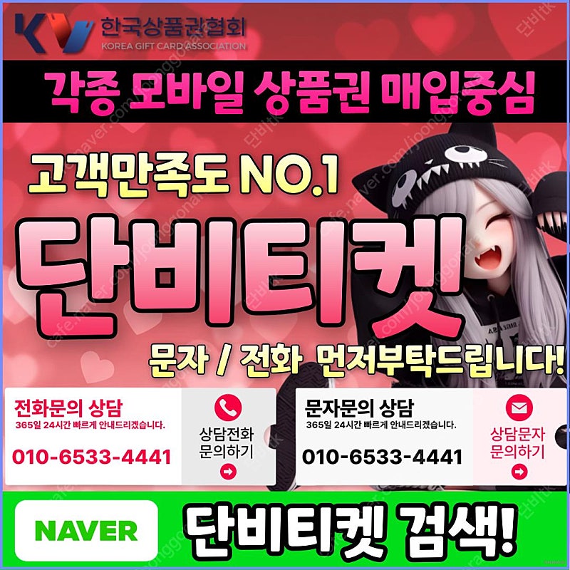 📢 제목에 "제조사/ 브랜드 명"과 "상품명”를 넣어 작성하면, 보다 빠른 판매가 가능합니다! 📢 게시글 작성 시 배송 방법에 “직거래”와 “내 위치” 설정할 경우, 보다 빠른 판매가 가능합니다! 이미지 클릭시 상담 바로 연결됩니다! ***-****-**** 전화/문자 주세요 정식 사업자 등록업체 1등 단비티켓 단비티켓은 중고나라 샐러회원으로 안전한 거래를 지향합니다. 1. 각종 모바일 백화점상품권 매입 2. 컬쳐랜드 상품권 3. 카드 / 상품권 4. 스타벅스e카드 상품권 5. 구글기프트 11당 최고가 6. 모바일 문화상품권 단비티켓은 사칭 및 사기 예방을 위해서, 음성통화 및 문자로 거래를 진행하고있습니다. ***-****-**** 🚨회원님의 거래 게시글을 노린 중고나라 운영진 사칭 피싱 사이트를 주의하세요🚨상품 등록 정책에 위배되어 마스킹 처리된 정보가 있습니다.