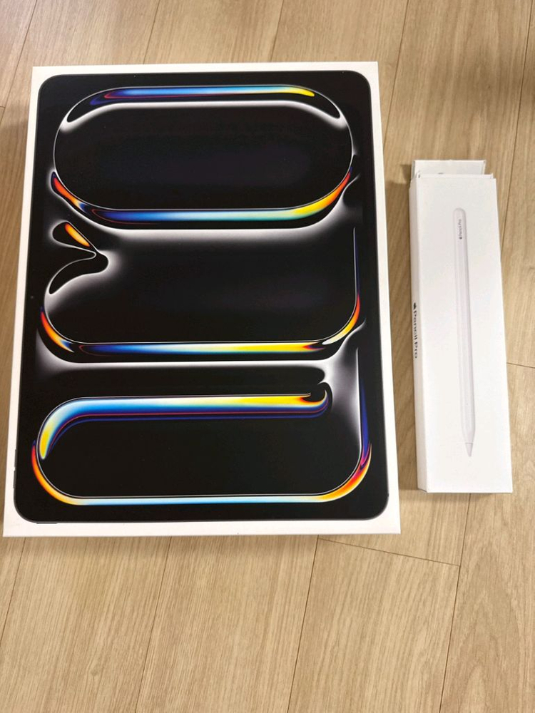 아이패드 프로 13 M4 256GB 블랙 wifi ( 각인 X ) 첫사용 7월 13일 사이클 7회 배터리 성능 100% 기스없음, 외관손상 없음 강화필름 부착되어있음 패드 박스, 애플펜슬 박스, 애플펜슬, 충전 어뎁터, 케이블 같이배송 사놓고 쓰는일이 적어서 처분합니다