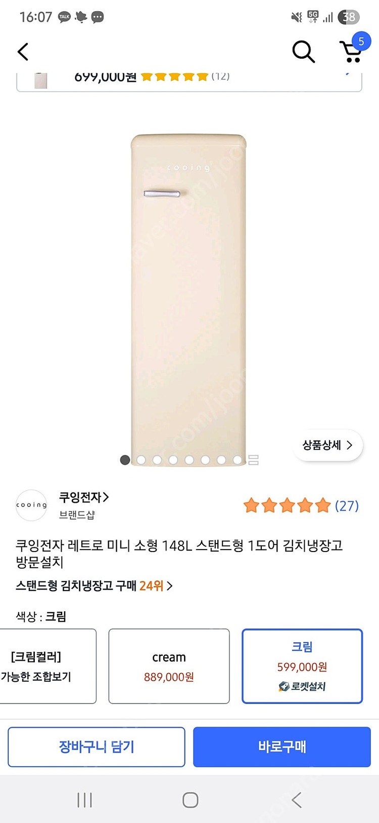 쿠잉전자 레트로 미니 소형 148L 스탠드형 1도어 김치냉장고 판매합니다. 새상품 배송기사님이 설치까지 마무리해주고 가십니다. 지인께서 선물해주셔서 사용하려고 했는데 자취방 사이즈가 제일 작은 평수이다 보니 놓을곳이 없어서미스로 다른분께 넘깁니다. 음료수, 신선식품, 김치등 다 수납가능하고 사이즈 좋아요.! 설치비용 포함 599,900원인데 딱 480,000원에 판매합니다. 안심번호 문자주세요.