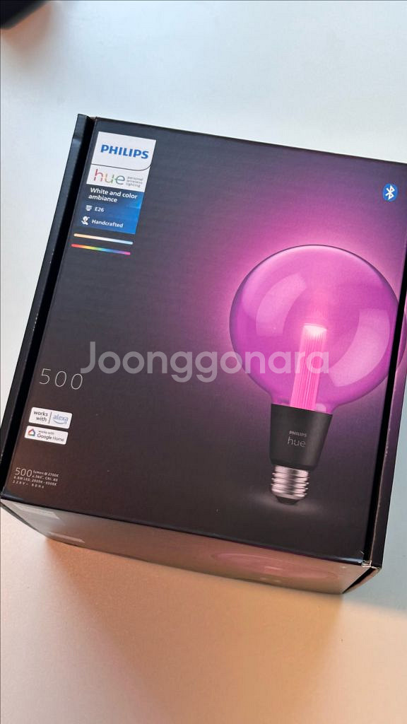 필립스 휴 화이트&컬러 앰비언스 라이트가이드 라지 글로브 스마트 전구 제품입니다. 개봉해서 확인만 해본 새제품입니다. 색 조절, 밝기 조절 가능한 제품이고 E26 소켓이에요. 선물 받았는데 전구가 생각보다 많이 커서 저희 집엔 사용 어려울 것 같아 판매합니다.