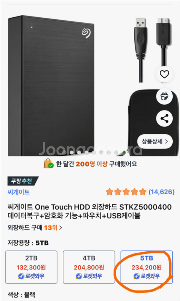 씨게이트 One Touch 외장하드 5TB(5테라)입니다. 쿠팡에서 정식수입 제품이 23.4만원이고, A/S 보증이 어려운 해외직구는 19.8만원 하네요 (제가 판매하는 건 국내 정식수입 제품입니다.) ‼️참고‼️ : WD 외장하드가 가격이 싸지만 제가 씨게이트랑 WD 둘 다 쓰다가 이유없이 WD만 고장나서 작업 데이터 다 날렸습니다. 😭😖😩 데이터 복구 서비스까지 제공하는 씨게이트로 오세요!! ———————————— - 데이터 복구 서비스 포함 / 3년 보증(피씨디렉트) / 개봉시 정품 스티커 부착함 - USB 3.0 지원 - 휴대용 파우치 포함 - 블랙 색상 - 박스와 파우치, 케이블 등 구성품 모두 처음 포장 상태로 재포장 해두었습니다. ———————————— ‼️기타 추가 설명‼️ : 2024년 9월에 제가 기존에 사용하던 WD 외장하드가 고장났는데, 데이터 복구업체에서 복구 후에 백업하는 용도의 새 외장하드가 추가로 필요하다 하여 구매했습니다. 개봉 후 동봉해서 복구업체로 보냈는데 끝내 기존 WD 외장하드 복구를 실패해서 새 외장하드는 미사용 제품 그대로 돌려받았습니다. 즉, 개봉 후 미사용 제품입니다. 구매자님이 제품 등록부터 하시면 됩니다. 석계역 직거래 및 택배거래 가능합니다.