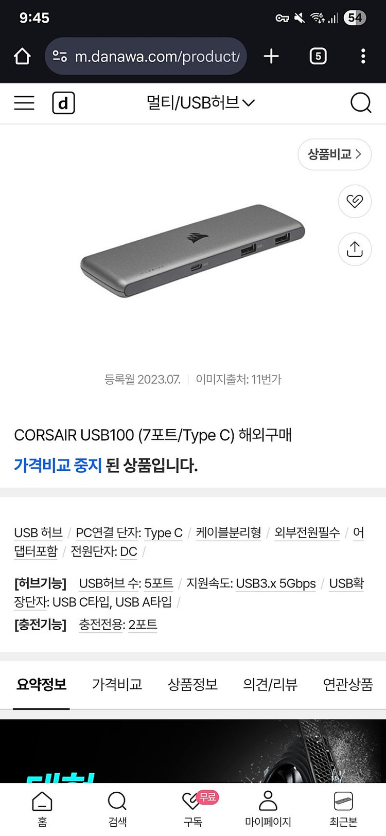 📢 제목에 "제조사/ 브랜드 명"과 "상품명(ex. 맥북 에어 13)”를 넣어 작성하면, 보다 빠른 판매가 가능합니다! 📢 게시글 작성 시 배송 방법에 “직거래”와 “내 위치” 설정할 경우, 보다 빠른 판매가 가능합니다! 🚨회원님의 거래 게시글을 노린 중고나라 운영진 사칭 피싱 사이트를 주의하세요🚨 CORSAIR USB100 USB 허브입니다 해외직구한 허브입니다. 셋업 변경으로 판매해요 - 7포트 (Type C) - USB 3.x 5Gbps - USB C타입, USB A타입 지원 박스랑 구성품 아마도 다 있어요~ https://m.danawa.com/product/product.html?code=21583478&cateCode=11239702 반품, 교환, 환불은 불가능합니다. 신중한 구매를 부탁드립니다.