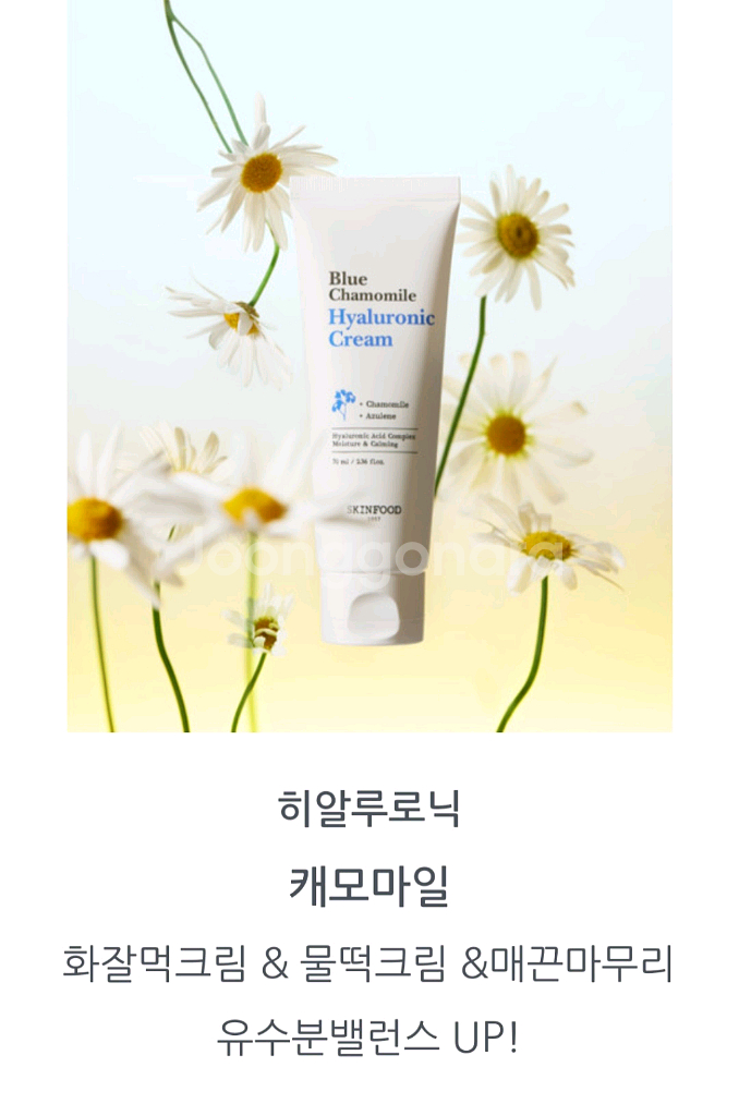 미개봉 스킨푸드 블루 카모마일 수분 크림입니다. 카모마일과 아줄렌 성분으로 피부 진정에 효과적입니다. 70ml 용량으로, 건조한 피부에 수분 공급에 좋습니다. 별도 문의 없으시면 바로 안전결제 부탁드려요! 28년
