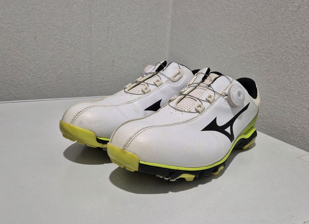 미즈노 남성골프화입니다. 가죽소재이며 사이즈260mm. 신기편리한 보아골프화. 상태양호합니다. 택배가능(택배비6000원)