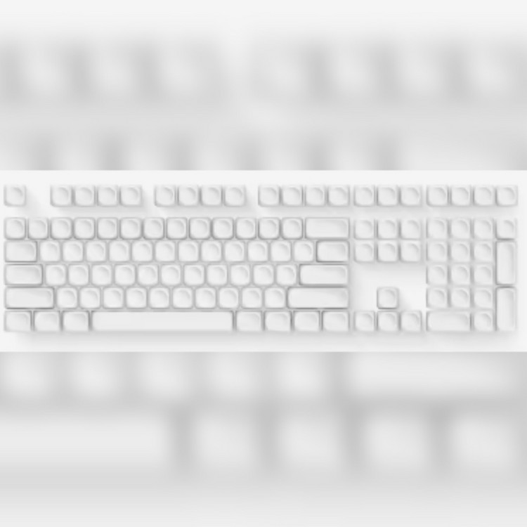 화이트 108키 키캡입니다. 무각인 제품이며 윗부분이 움푹파여있는게 특징입니다