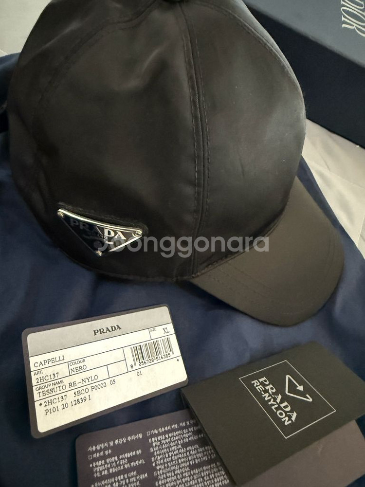 프라다 리나일론 볼캡입니다. 요즘 100만원 가까이 합니다. 백화점 구매 품이고 더스트 파우치 있습니다 박스는 없습니다.프라다 볼캡 연예인 두상 아니면 xl도 작을수있습니다. 귀한 사이즈구요 특히사항없습니다. 상태 아주 좋습니다 삼각로고등에 기스도 없습니다.