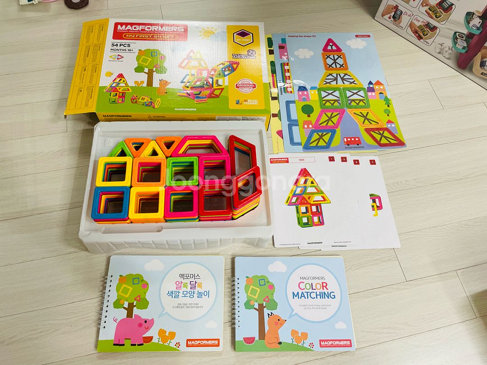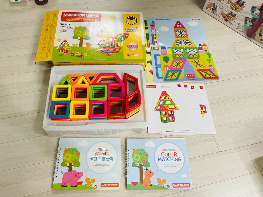 맥포머스 마이 퍼스트 세트 54피스 세트 1박스로는 부족해서~ 추가로 구매한 것까지 함께 일괄판매합니다 대충 세어보니 1피스 잃어버린 것 같아요! 오차 있을 수 있어요~ - 만들기 가이드 책자 포함 깨진 부분 없이 상태 좋아요! 이사정리중입니다