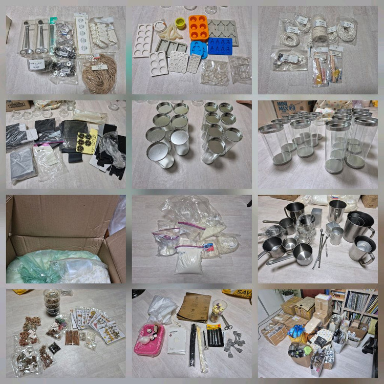 캔들테라피 양초 향초 재료 대량 일괄 판매 원가 합산 금액: 최소 1,836,420+@ ■ 재료 목록(서치용) 향료, 염료, 실리콘 몰드, PC 몰드, 메리고 캔들 용기, 사각 용기, 원형 투명 용기, 원형 불투명 용기, 7온스, 9온스, 포장용 박스, 소이왁스, 실크왁스, 눈꽃왁스, 팜왁스, 양초 심지 2호 3호 5호 롤, 드라이플라워, 비커, 왁스 심지 가위, 심지 고정대, 인덕션 화구, 타이아로마 ■ 참고사항 지인분 대신해서 정리합니다! 제가 아는 분야가 아니라 정확하지 않을 수 있고, 자세히 여쭤보셔도 답변 드리지 못하거나 오래 걸릴 수도 있습니다...ㅠㅠ 재료명과 수량은 이미지 참고해주세요. ■ 서비스 용도 불명이나 가격 불명은 전부 무료로 계산했고, 나중에 짐 한 덩어리 더 정리하면서 나온 비커나... 작은 조리펜이나... 몰드 뭉치나... 타이아로마 세트나... 그런 건 너무 힘들어서 적어두지도 못했습니다...ㅠ 수량 외 것들은 그냥 다 무료 서비스인 걸로 합시다... ■ 가격 지인분께서 오래 사용하신 중고 물품이라 사용감이 있어서 물품별로 가격을 더 깎아봤더니 1,174,500원으로 나오더라고요! 그냥 쿨거래로 100만원에 가져가주셨으면 좋겠습니다. ■ 배송 - 차량(광주광역시나 그 인근 지역만 해당) 꼭!! 차량 가져오셔야 하고, 동행인 있으면 좋습니다! 저도 같이 옮겨드리긴 하겠지만, 둘이서만 옮기면 정말 힘들어요...ㅠㅠ(추천 차량: SUV, 트렁크 큰 차, 아무튼 커다란 차) 만약 차량 없으시다면 문의 주세요! 저랑 부모님 차로 댁까지 옮겨드리겠습니다!! 대신 시간대 조정이 필요해서 시일이 조금 걸릴 수도 있습니다. ■ 배송 - 택배 사진으로 보시다시피 양이 매우 많고 무게가 상당해서 배송비용을 미리 예측하기가 어렵습니다..ㅠㅠ 배송 후에 배송비 알려드릴 예정입니다! 🚨 글자수 제한으로 거래규칙은 다른 상품 설명에서 참고바랍니다🚨 🚨 찔러보기X, 재료 개별 사진 촬영 불가(물품이 너무많아서 불가능), 전체샷 인증 가능