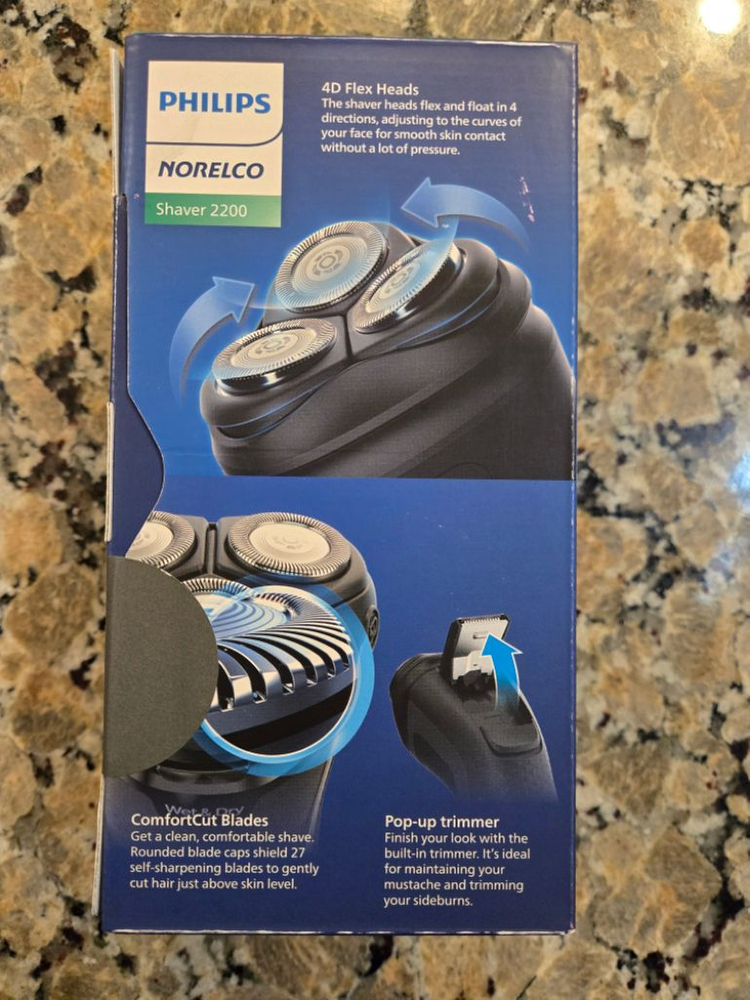 미개봉 Philips Norelco 2200 면도기+머리 팝업 트리머 복합기능이 있는 무선 전기 면도기 (현재 다나와 검색 13만원 입니다. 저가 1000시리즈 아닙니다) USB 충전 입니다. 물세척 미국에서 구입한 면도기 입니다. 개당 가격입니다 2개 구입시 배송비 면제