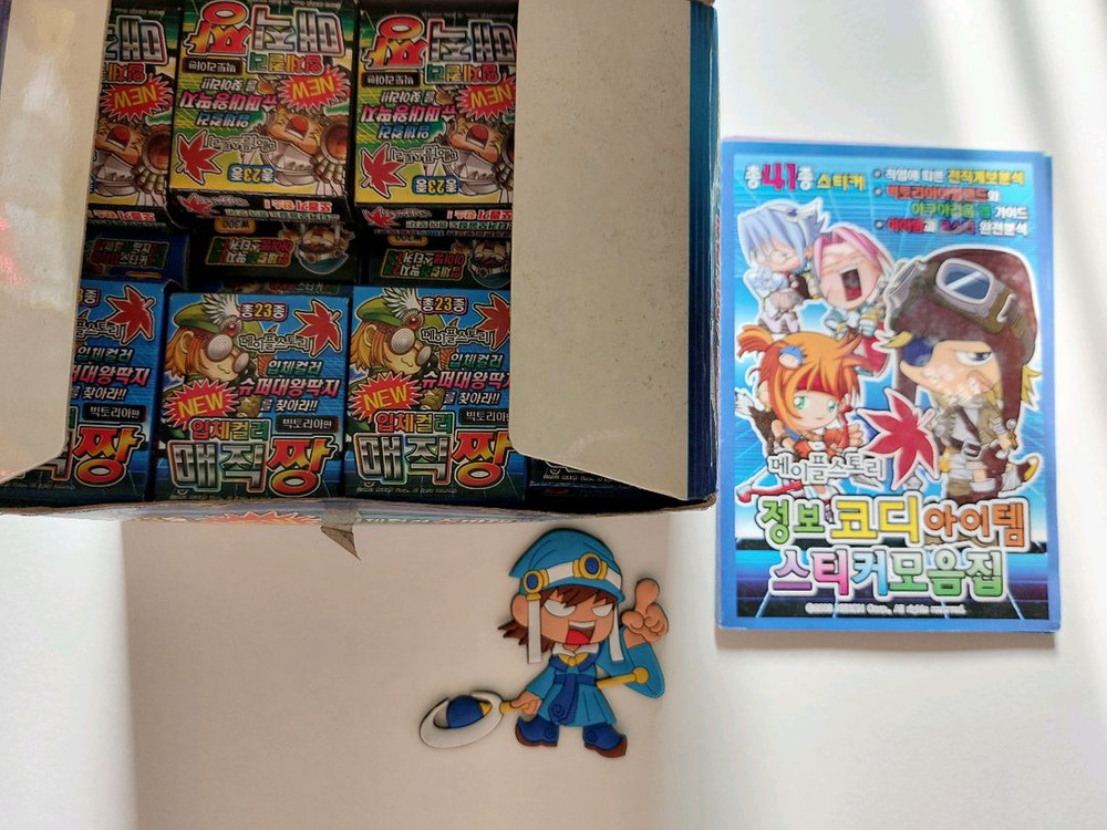 고전 메이플스토리 컬러 매직짱딱지 1박스체 판매입니다 박스안에 왕딱지1개 스티거 모음집3개 그외 곽에들엤는딱지들 곽안에 작은딱지2개와 스티커1개씩 들었습니다 (희귀하지만 아주오래된거라 딱지에 먼지좀 묻어을수있습니다) 수집이나 소장용으로 필요하신분 택포 14만원에 드립니다 구매하실분 연락주세요 010-3007-8837입니다 ↘️구매후 환불x 네고x 🗨구매문의 답장없는 무응답받지않습니다 🐕🦺옛날 딱지들 올려놓은거 있으니 구경하시고 가세요!!