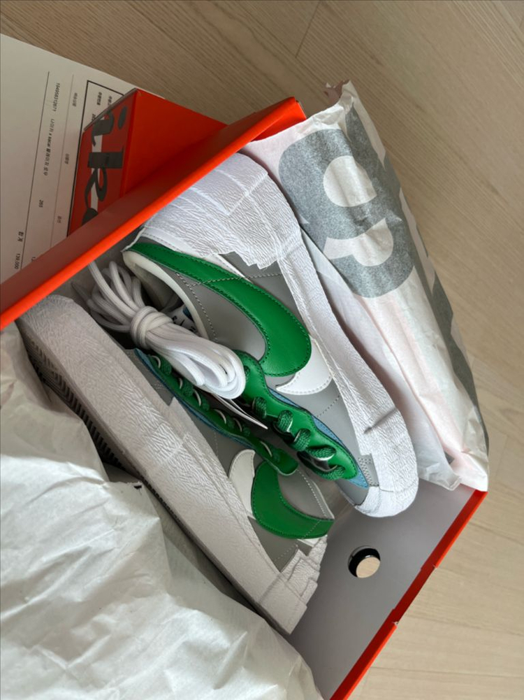 21년도 나이키 공홈 구매 [주문확인서보유] 사카이 블레이저 로우 265 클래식 그린 색상 입니다 구매후 미시착 상품이며 보관만 하다 판매합니다 신발자체가 발볼이 좁게나왔어요 구매당시 139,000 원으로 현재도 크림에 같은사이즈 14만원에 올라와있습니다 택배비포함 13만원 대전 직거래시 12만원 (관저동,봉명동) 금액조절은 불가합니다