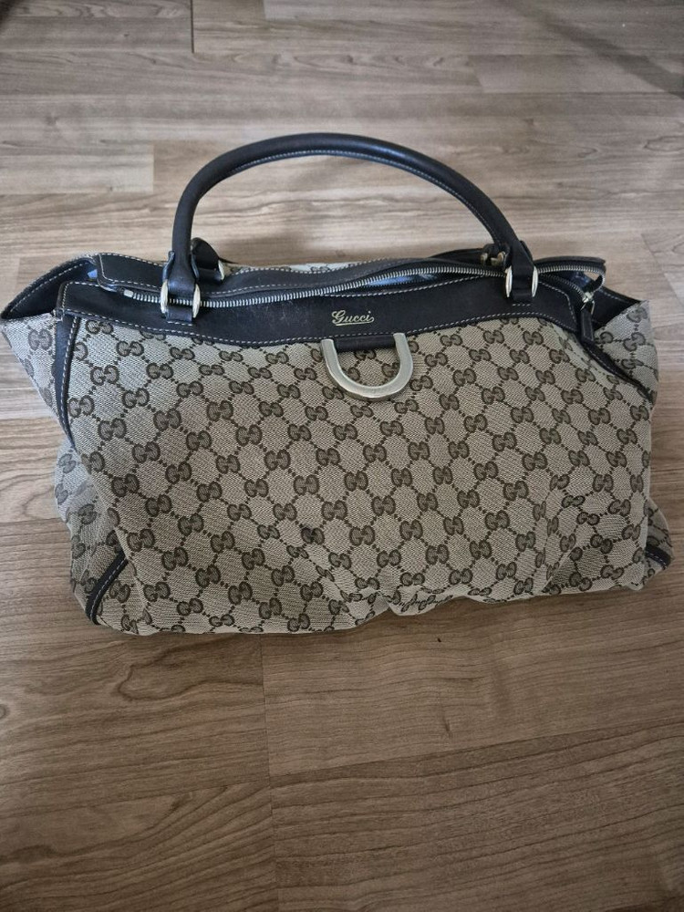 거의 든 적 없는 사용감 깨끗한 구찌 토트백입니다. 10년 전 구매하였고 손잡이 가죽도 튼튼하여 벗겨짐 하나 없어요.