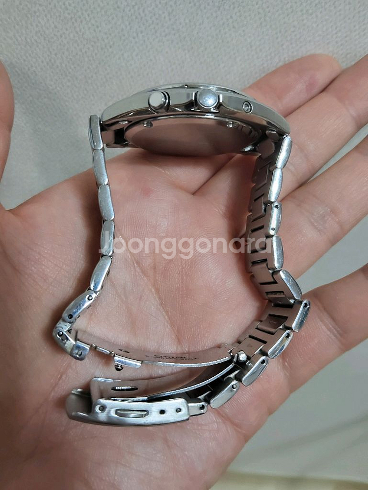 제 상점의 모든 상품은 12월까지만 판매합니다. 일본경매사이트에서 구매했습니다. 글래스에는 흠집 없지만 케이스 및 밴드에 생활기스 다수 존재합니다. 주기적으로 전파수신을 받아 시간은 잘 맞습니다만, 용두 아래쪽의 수동으로 수신확인하는 버튼이 눌러지지 않는 채로 고정돼있네요. 다소 사용감이 있는 시계여서 별 신경안쓰고 편하게 차는 툴워치로 사용했습니다. 단품이고 줄은 넉넉하게 19cm 입니다.