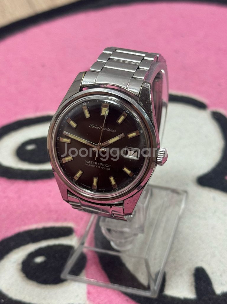 SEIKO Sportsman 6602-9981 DIASHOCK 17 Jewels 세이코 스포츠맨 6602 다이아쇼크 17석 62MAS 에디션 판매합니다. 1960년도 제작되었으며 수동 기계식 시계입니다. 세이코 스포츠맨 중에서도 62MAS 에디션으로 나온 이 시계에 사용된 루밍 핸즈로 인해 62MAS 다이버와 유사한 시계의 느낌을 받을 수 있습니다. 실버 페인팅으로 마감이 된 이 시계는 62MAS의 부품들보다 훨씬 나은 상태를 유지하고 있으며 뛰어난 착용감으로 시대를 초월한 스포츠 시계라는 평을 받습니다. 케이스 크기 : 38mm 용두제외 36mm 러그 투 러그 : 42.5mm 러그 너비 : 19mm 케이스 두께 : 약 10mm 정상적으로 작동중이고 날짜는 시침으로 변경 가능합니다 개인적으로는 외관 상태는 빈티지스러움이 녹아있다 생각하는 정도의 상태라고 생각됩니다 군데군데 세월의 흔적 있음, 빈티지한 맛에 착용하시거나 빈티지 어느정도 이해 가능하신분만 연락주시면 감사하겠습니다~ 이 시계 모델은 매물도 잘 없지만 찾는다해도 수리비가 더 들정도의 시계가 대부분인 듯 하고 그중에서도 검판은 은판대비 희귀매물입니다 , 다이얼 인덱스등 년식대비 괜찮은 상태를 유지중이에요 9982 모델과는 다르게 다이얼이 민자가 아니라 빛과 각도에 따라 오묘하게 달라 보이는 모습이 영롱합니다 궁금한점 있으시면 채팅 남겨주세요 우체국 방문신청으로 보내드립니다 (신청일 다음날 수거)