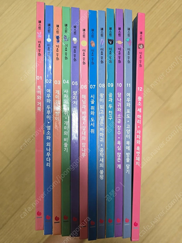 베스트 창작 그림책 이솝우화 12권 세트입니다. 전체적으로 깨끗한 편이고 찢어진 곳, 낙서한 곳은 없지만 그래도 중고이니 책컨디션 예민하신 분은 패스해주세요 직거래는 대구 수성구고 택배는 3500원 추가입니다
