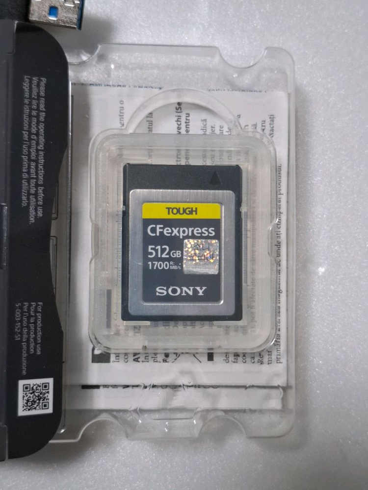 정품/소니 TOUGH CF Express 512GB + 리더기 / 메모리카드 type b B타입이고 기변하면서 사용할수 없게되어 팝니다. 정품이며 구입했을때 박스 상태로 보관중입니다 메모리카드도 카메라와 함께 제습함에 보관하며 사용해서 상태는 좋습니다. 새상품은 76만원 정도입니다 리더기는 14만원대 입니다 렉사, 샌디스크와 3사 비교시 소니가 성능면에서 제일 좋습니다 리더기는 박스가 없고 케이블하고 같이 있습니다