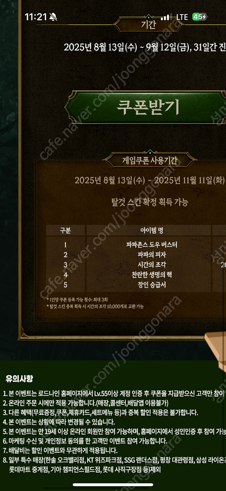 ※ 등록한 게시글이 회원의 신고를 받거나 이상거래로 모니터링 될 경우 중고나라 사기통합조회 DB로 해수집/활용될 수 있습니다. 📢 제목에 "제조사/ 브랜드 명"과 "티켓명(ex. 스타벅스 아메리카노 Tall) ”을 넣어 작성하면, 보다 빠른 판매가 가능합니다! 📢 게시글 작성 시 배송 방법에 “직거래”와 “내 위치” 설정할 경우, 보다 빠른 판매가 가능합니다! 📢 내가 가진 커피, 편의점 e쿠폰을 <J쿠폰>에서 간편하고 빠르게 판매가 가능합니다! 2일 이내 판매금을 정산 받아보세요. 연락주세요 🚨회원님의 거래 게시글을 노린 중고나라 운영진 사칭 피싱 사이트를 주의하세요🚨