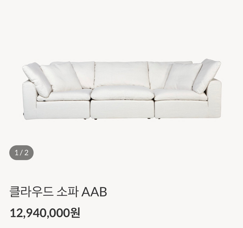 까사 알렉시스 클라우드 소파 AAB 판매합니다 색상은 navy 색상입니다 - 사이즈: A 1020 x 1020 x 800(mm), B 1000 x 1020 x 800(mm), C 1020 x 1020 x 470(mm) - 소재: 100% 천연 린넨 - 구스다운+구스페더 충전재 정가는 12,940,000원이에요