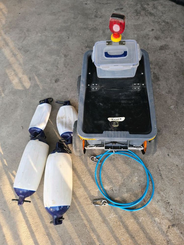 조과통계의 명품인 피닉스조과통 53L입니다. 보트팬더4개, 견인줄, 물,차키등을 담을수있는 자작보관통, 태양열인식등 포함입니다. 사진상 체크한 상판이 약간 휘어짐이 2군데 있고 사용상 전혀 지장없습니다. 부피가 커서 이천 직거래 선호합니다. 택배거래시 대신화물 택배비 8천원 추가됩니다.