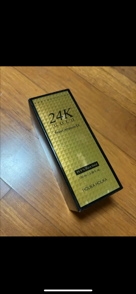 홀리카홀리카 24K 골드 리페어 앰플 EX 새상품입니다. - 99.9% 순금 함유 - 피부 장벽 강화, 영양 공급, 주름 개선 기능성 - 24K 순금 성분이 피부에 활력을 줘요 - 펩타이드 성분이 피부 탄력을 높여줍니다 - 발효 콜라겐이 피부 속까지 영양을 공급해줘요 11번가, 쿠팡, G 마켓에서 각각 다른가격에 팔고 있는데, 새 제품 45,000원에 가져가실분 연락주세요.