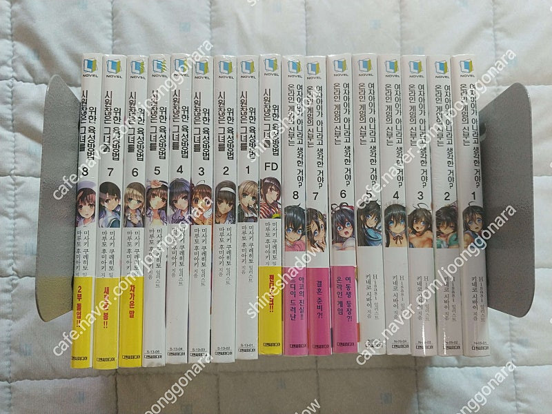 이사 때문에 책장을 정리하게 되어 소장중이던 라이트 노벨을 판매합니다. 구매만 해놓고 나중에 봐야지 하고 결국 안 봐서 전부 미개봉 새 책입니다. (극히 일부 비닐만 벗긴 책 있으며 별도로 표기하였습니다) 제품과 권수, 가격은 아래 리스트에서 참조하여 주시고요. 사진도 맨 아래에 있습니다. 거래는 직거래 및 택배 거래 가능하며, 택배는 입금 확인 후 착불로 배송해드립니다. 직거래는 1호선 부천역 부근에서 가능합니다. 연락은 010-육육팔팔-8401 로 부탁드리며, 가급적 문자로 보내주세요. 카톡은 전화번호랑 연동되어 있지 않아서 회신이 불가합니다. 단수 혹은 복수 구매하실 경우 아래와 같은 혜택 제공합니다. 한 종류 구매 시에도 서비스 원서 1권 드립니다! 두 종류 이상 구매 시, 10% 할인+원서 2권(게시글 맨 밑 서비스 원서 리스트 참조) 서비스 해드립니다. 세 종류 이상 구매 시, 10% 할인 or 무료 배송 + 원서 3권(+a) 서비스 해드립니다. 참고로, 만화책도 다수 판매 중이므로 관심 있으시면 제 게시글로 검색해주세요. (라이트노벨과 교차로 구매하실 경우도 위 혜택 제공 가능합니다) ------------- 1. 던전에서 만남을 추구하면 안 되는 걸까(던만추) 1~10권 + 던만추 외전 소드 오라토리아 1~4권 : 6만원 (던만추 제 6권만 비닐 제거) 2. 이 멋진 세계에 축복을 (코노스바) 1~6권 + 이 멋진 세계에 폭염을 1~3권 : 4만원 3. 시원찮은 그녀를 위한 육성방법 1~8권 + FD(팬디스크) : 3.5만원 4. 온라인 게임의 신부는 여자아이가 아니라고 생각한 거야? 1~8권 : 3.5만원 5. 노 게임 노 라이프 1~8권 : 3.5만원 6. 하이스쿨 DXD 1~20권 + DX 1권 : 8만원 7. 엑셀월드 1~18권 : 8만원 8. 비탄의 아리아 1~19권, AA 1~3권 : 9만원 9. Re:제로부터 시작하는 이세계 생활 1~7권 + Ex 1~2권 + 단편집 1권 + 코믹스 1~2권 : 4만원 10. 종말의 세라프 1~5권 : 2만원 11. 천경의 알데라민 1~5권 : 2만원 13. 대영웅이 무직인 게 뭐가 나빠 1~2권 : 8천원 12. 이상적인 기둥서방 생활 1~7권 : 3만원 (제 1권, 6권 비닐 제거) 18. 야한 이야기라는 개념이 존재하지 않는 지루한 세계 1~9권 : 4만원 12. 듀라라라 2~13 + 외전 + SH 1~4 + 사이카편 1~3권(완) : 8만원 21. 파타 모르가나의 저택 1~3권 : 1만원 22. 마장학원 HXH 1~2권 : 6천원 13. 역시 내 청춘 러브코메디는 잘못됐다 1~11권 + 6.5권 + 7.5권 + 10.5권 : 5만원 (제 1권만 비닐 제거) 7. 개와 공주 1~11권 : 4만원 11. 나는 친구가 적다 1~11권 : 4.5만원 16. 육화의 용사 1~6권 : 2.5만원 17. 새 여동생 마왕의 계약자 1~9권 : 4만원 20. 콥스파티 상하 : 8천원 23. 용왕이 하는 일 1~3권 : 1만원 서비스 원서 리스트 (맨 아래 사진 참조) 크로마티 고교, 스프리건, 쿠니미츠의 정치, 세인트영맨, 에반게리온, 신암행어사, 기믹, 바실리스크,무한의주인, 창천의권, 헬로우 블랙잭, 에어기어, 불가사의한 소년, 샤먼킹, 갤러리페이크, 제트맨, 고바야카와 노부키의 사랑 등 📢 제목에 "출판사+책 이름+저자”를 넣어 작성하면, 보다 빠른 판매가 가능합니다! 📢 게시글 작성 시 배송 방법에 “직거래”와 “내 위치” 설정할 경우, 보다 빠른 판매가 가능합니다! 🚨회원님의 거래 게시글을 노린 중고나라 운영진 사칭 피싱 사이트를 주의하세요🚨